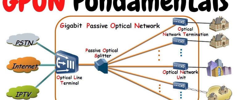 Definition: GPON (Gigabit Passive Optical Network) is a type of Passive Optical Network (PON) that uses fiber optics to deliver broadband services.